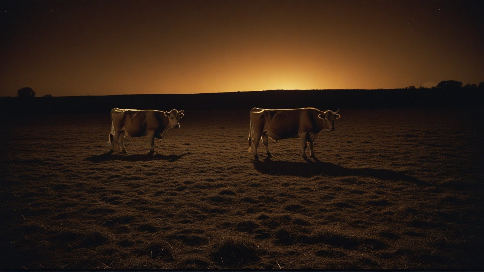 Under the moonless sky, they approached Farmer Johnson’s field, the cows silhouetted against the distant barn. Hank, with his usual bravado, volunteered to attempt the first tip. As he crept towards the largest cow, the air felt charged, like before a storm. The cow lifted its head, eyes reflecting the dim starlight.