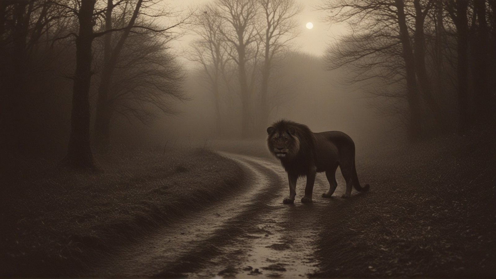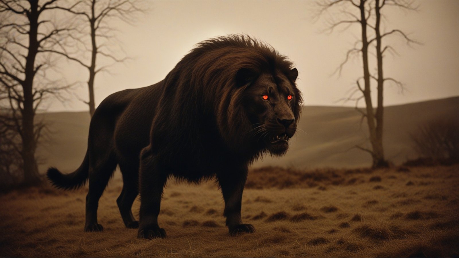 Suddenly, outta nowhere, this massive black creature stepped onto the path. It was about the size of a small horse, with long, shaggy fur that seemed to absorb the moonlight. Its head… well, it looked like a lion’s, but its eyes – they were glowing red, like two tiny bonfires in the night. I tell ya, the sight of it sent a chill right down my spine.